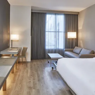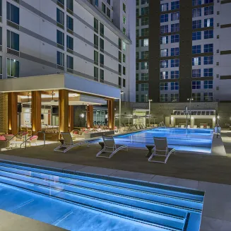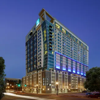 The AC Hotel Nashville Downtown is one of three hotels located at 410 5th Avenue South, across the street from the Music City Center. The full-service hotel features 209 thoughtfully-designed, modern guest rooms, including a top-floor Presidential Suite. The AC Hotel features a resort-style outdoor pool and bar on the 6th floor, as well as a 24-hour fitness center with Peloton® bikes and complimentary Wi-Fi. The full-service meeting space can accommodate 300 guests and is situated on the 21st floor overlooking Nashville's skyline with an adjacent rooftop bar, a 24-hour fitness center with Peloton® bikes. Allow AC Hotel Nashville Downtown to bring harmony and creativity to your escape.