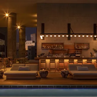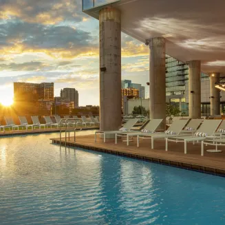 With the Sunset Bar, our hotel heats up downtown Nashville's social scene day and night. Soak up the sun with stunning views and energetic beats. The WET Deck features a 9,700-square-foot pool area with luxe cabanas and a poolside bar.