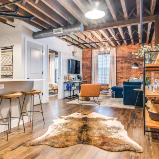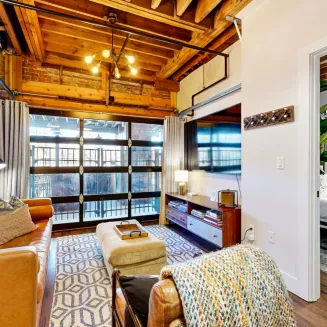 A beautifully restored tobacco barn turned into stylish vacation rentals. Relax with upscale amenities like a pool and outdoor lounge areas, all set in vibrant Marathon Village near local shops and distilleries.