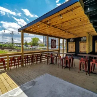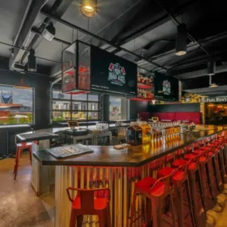 Welcome to Bad Axe Throwing Nashville, home of the largest Axe throwing venue in TN. The ONLY axe throwing bar in Downtown Nashville. This location boasts 9000 sqft of space and an amazing panoramic downtown skyline view. Custom designed torched woodwork, multiple incredible murals (take that selfie!), an outdoor patio, and over 14 axe throwing lanes (29 targets) with individual private bar tops. Dine with us at Blu Ox, our Full Service restaurant which has a Northwoods inspired menu with a southern twist. The ONLY axe throwing venue in Tennessee with a full service bar and restaurant. Blu Ox Restaurant and Bar always welcomes axe throwers and non axe throwers alike!!
