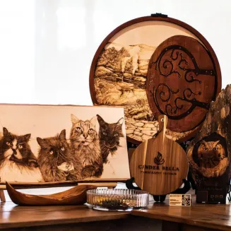 Cinder Bella Studios also offers premium, personalized gifts. From engraved charcuterie boards and bourbon flight trays to "Home Sweet Home" ornaments, hand-burned pet portraits, and other hand-burned fine art, each piece is designed to be meaningful, memorable, and beautifully crafted. Perfect for realtors, mortgage lenders, or anyone looking to gift with intention and a spark of creativity. Whether you're planning a bachelorette bash, a brand activation, or a boardroom refresh, Cinder Bella Studios brings the fire (literally). Let us create a one-of-a-kind experience your guests will talk about long after the wood has cooled.