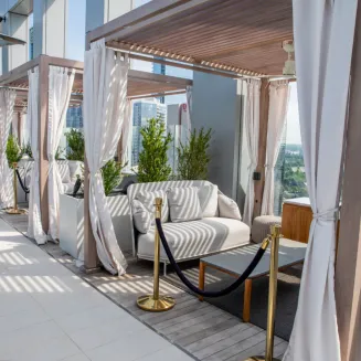 Enjoy private cabanas designed for relaxing days and vibrant nights, all with stunning city views.