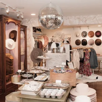 Flea Style is home of the original hat bar! This interactive concept welcomes visitors to customize hats (wide brim, short brim, cowboy, trucker) from their large selection of exclusive styles and special accessories. Once customers pick out their favorite items, an expert stylist will bring the one-of-a-kind hat to life from the comfort of Flea Style's beautiful bars. In addition to hats, Flea Style offers unique apparel, gifts and goods. Their branding station is a huge hit for customers to personalize hats and leather items with initials to numbers and decals.