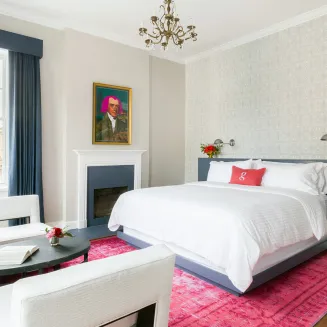 Located in one of the oldest buildings in the historic Nashville neighborhood of Germantown, the Germantown Inn is in a two-story, Federal-style house constructed in 1865 that was reimagined into a boutique inn in December 2016 while maintaining its original charm. Known in the neighborhood as “The Wallman House” for the building’s first owner, H. H. Wallman, a prominent shoemaker for the city’s elite at the time, the property features a charming red brick exterior, tall ceilings, large picture windows, a lush outdoor courtyard and a chic, private rooftop terrace with downtown and neighborhood views. The Inn offer 10 suites, including in the Carriage House, a 2,000 square-foot addition that opened in 2018. Each of the rooms offers a bespoke experience, combining modern and traditional architectural elements like custom brass lighting and original fireplaces to create a space equally as interesting and inviting. Each suite in the Carriage House is named after four of our country’s most influential women: Abigail Adams, Rosa Parks, Eleanor Roosevelt and Susan B. Anthony. The six light-filled suites in the Main House are named to honor former United States presidents. Local artist and graphic designer Caitlin Mello created the colorful presidential portraits that hang in each suite. Her original artwork emulates the unique and quirky characteristics of each president and weaves in elements that reflect their respective connections to the region.
