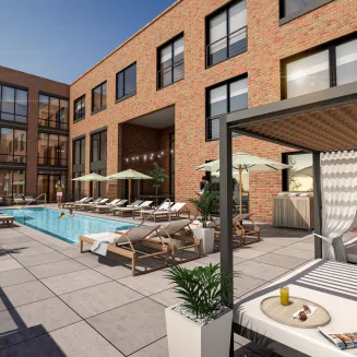 As a guest at Mint House - Marathon Village, you’ll experience state-of-the-art living in spaces that cater to your every need. The brand new building hosts 78, fully furnished, apartment-style suites. On site, an outdoor pool and BBQ area can be enjoyed during the best of Nashville's weather. Indoor common areas include a clubhouse, co-working space, and fitness center. Located on the fourth floor is a beautiful rooftop patio which can be reserved for private events. If you prefer to host indoors, the main floor event space can host up to 45 people. Choose from studio, one and two-bedroom suites for your stay.