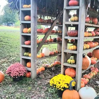 Corn maze , pumpkin patch, pole barn full of decor and pumpkins ,food trucks, hay rides and live bluegrass music!