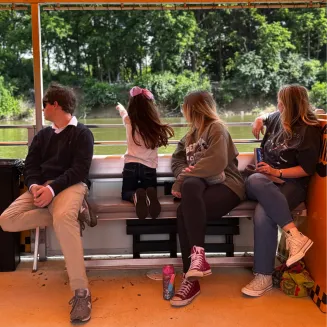 Our 40-foot vessel is equipped with a licensed Captain and Deckhand who prioritize safety and comfort. Each cruise includes music, shaded seating, and coolers stocked with refreshing beverages for purchase. It’s a fun and easy way to experience the river—perfect for visitors, families, and groups of all sizes.