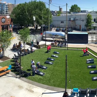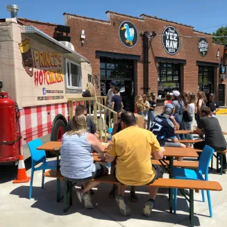 We are home to Ole Smoky Distillery, Yee Haw Brewing, White Duck Taco and Daddy's Dogs. We are a multi-faceted entertainment space offering Yee Haw beer on draft, Ole Smoky cocktails, retail bottle shop, gift shop, multiple food options, live music, tours, games, and jumbo sized televisions.