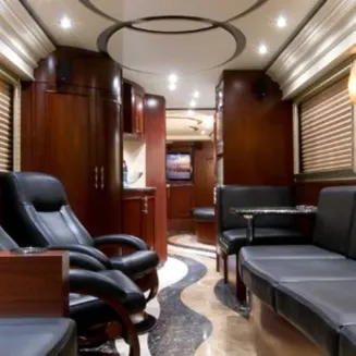 Premiere specializes in VIP tour buses loaded with luxuries rarely seen in other cities. Styled with leather seats, granite tables, large LED TVs with DirecTV, galley, upscale restroom, these coaches transport up to 24 guests in a first class lounge atmosphere.