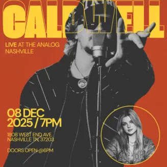 South Carolina's own Caldwell headlines with his signature blend of country, rock, and hip-hop, bringing a bold, electrifying sound. Opening the night is Remy Garrison, the soulful country artist from Birmingham now making waves in Nashville. Both artists hit the stage with full bands, transforming the elegant Analog room into a full-on rock fest you won't want to miss.