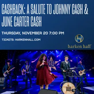 Madison has deep roots in the Cash family story — from Johnny and June's longtime home on Old Hickory Lake to Johnny's restoration of the historic Amqui Station that sits next door to Harken Hall. On November 20, those ties come full circle with CashBack, the acclaimed tribute band bringing the music of Johnny Cash and June Carter Cash back to Madison.