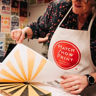 Come to our Block Party! Hand-ink and print on paper and fabric using some of Nashville's most recognizable imagery, cut into printing blocks by the designers at Hatch Show Print. As one of the oldest poster and design shops in America, we're still printing show posters for your favorite musicians, bands, and performers, one at a time, via letterpress printing. At the Block Party, adults work with a selection of hand-carved printing blocks and become familiar with the process of relief printing. Instructors will cover the basics of composing an image, with consideration given to creating layers and using color. You will learn how we sling the ink, roll the brayers, and design like it's 1879, making each piece by hand. (Don't worry, we're there and happy to help.) The final reveal is a "Wow!" moment.