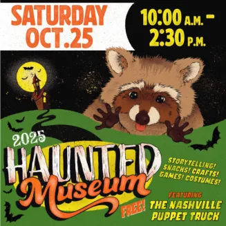 On Saturday, October 25, the Tennessee State Museum will celebrate its 27th annual Haunted Museum Storytelling Festival. Begun in the fall of 1998, this family day has become one of the most anticipated days of the year at the Museum. It offers families a free, fun and safe Halloween event for children of all ages. Each year, the Museum dresses up in its Halloween décor and presents games, crafts, stories and prizes. Kids wear their costumes and settle in to hear spooky stories from Tennessee's past.