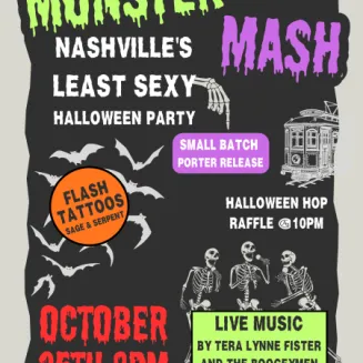 Attention, ghosts and ghouls! Announcing this year's Monster Mash (Nashville's Least Sexy Halloween Party ™️)! Featuring tunes by Tera Lynne Fister and the Boogey Men, and the return of our epic costume party! Come get spooky with Jackalope.