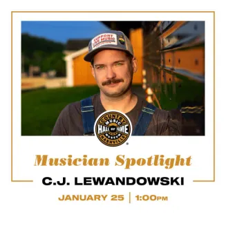 C. J. Lewandowski is the founder of bluegrass ensemble the Po' Ramblin' Boys, which won the International Bluegrass Music Association's 2018 New Artist of the Year award. In 2024, the museum featured Lewandowski in its American Currents: State of the Music exhibition, where his artifacts were displayed alongside those of his mentor, Bobby Osborne. Lewandowski created his 2025 album, Keep On Keepin' On, around the final recordings he made with Osborne before Osborne's death in 2023. The record features Sam Bush, Wyatt Ellis, Del and Ronnie McCoury, Billy Strings and Molly Tuttle.