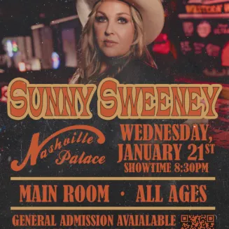 Join us on Wednesday, January 21st, for a night of powerhouse vocals, Texas attitude, and the kind of storytelling country music fans crave. Sunny Sweeney brings her signature blend of honesty, humor, and heart to the Main Room for an all-ages show you won't want to miss.