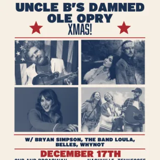 Uncle B's Damned Ole Opry is Bryan Simpson's irreverent trippy-trad tent revival of a musical experience currently in residence in the Neon Steeple at Chief's on Broadway in Nashville The variety show features a wildly talented slew of colorful and creative musicians, singers, and songwriters that tear things down to the stud level all in the way of a grand ole time. Each month, Uncle B's honors a legendary record with renditions of classic songs performed on banjos, fiddles and mandolins. It's hay bales and hell yeahs! Imagine Billy Strings meets Barnum and Bailey. Hee Haw and Half Baked had a baby. It's best witnessed instead of discussed. Come lay eyes on it.