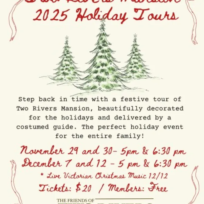 Includes whiskey samples, tour of Two Rivers Mansion and access to the grounds