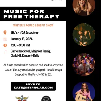 Join us at JBJ's Nashville on January 13 for a free Writer's Round benefit supporting the Other People Fund, a Nashville-based nonprofit clothing brand dedicated to expanding access to mental health care. Hosted in partnership with MY PR Lab, this special night will feature live performances from Kimberly Kelly, Clark Hill, Magnolia Rising, and Carrie Brockwell, all coming together for an evening of music, community, and impact.